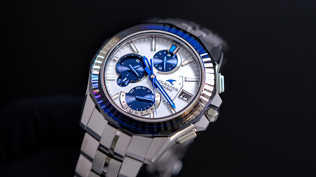 OCW-S6000PB-7AJR:プラチナの輝きを宿す、多面カットサファイアベゼル