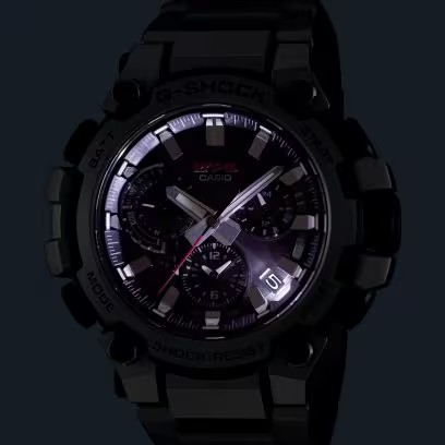 「カシオ MTG-B3000D-1AJF」は充実した機能性もさることながら、磨き上げられたシルバーベゼルや巧妙につくられた複雑な裏蓋パーツが特徴的。