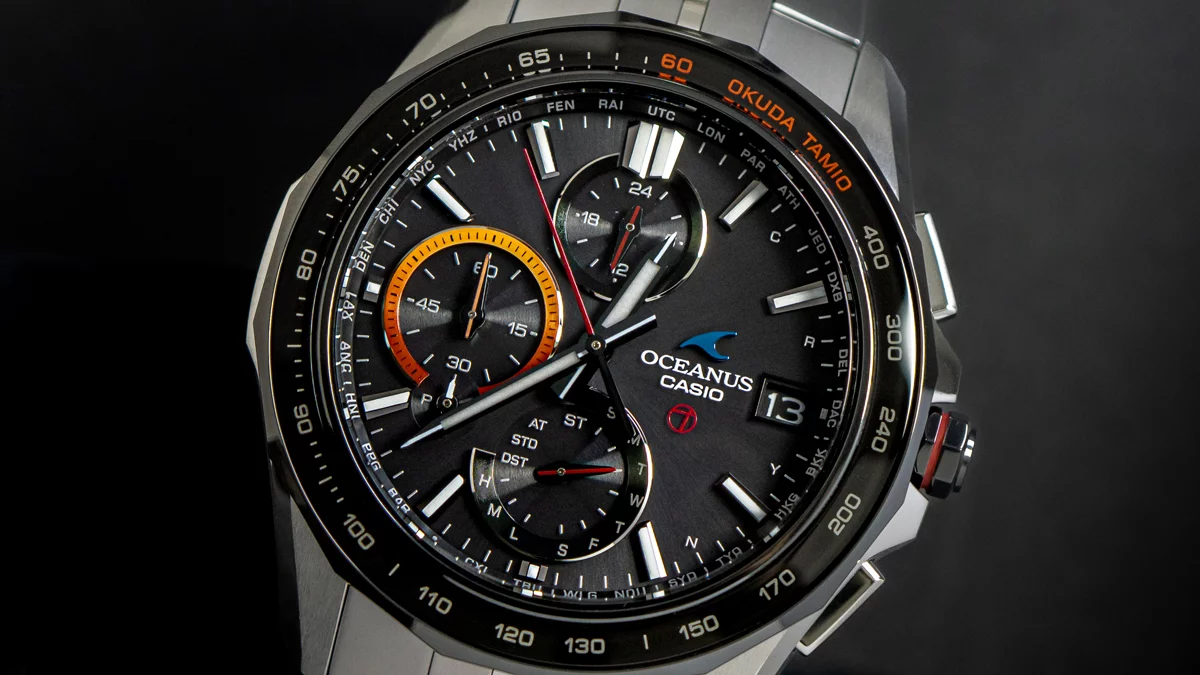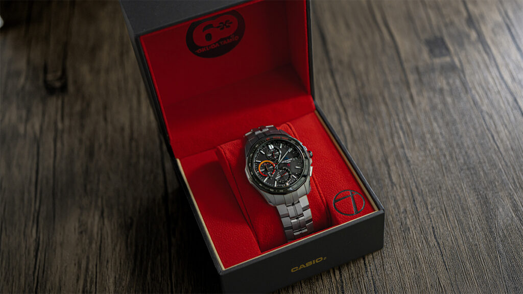『OCW-S7000TS-1AJR』のベゼルとケースは、記念モデルにふさわしい完成度を備えています。