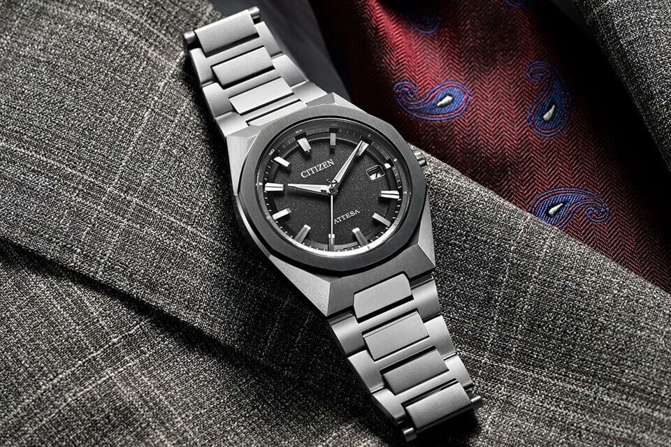 素材にはシチズン独自のスーパーチタニウムを採用し、ステンレスの約40%の軽さと5倍以上の硬度を実現。耐傷性や耐メタルアレルギー性に優れ、長く安心して使えるのも魅力です。