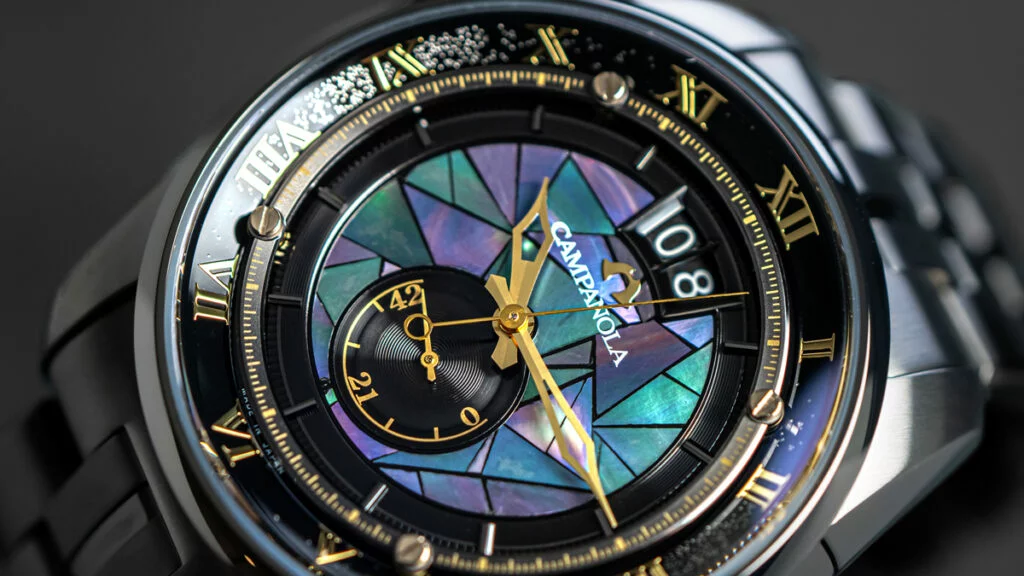 ラインナップは、機械式モデル1種とクォーツ式モデル2種で構成されています。いずれもブランド初の試みとして、ケースとブレスレットの双方にデュラテクトDLCを施し、漆黒で統一された佇まいを実現。また、カンパノラらしいミニッツリピーター、グランドコンプリケーションといった機能性も魅力となるでしょう。