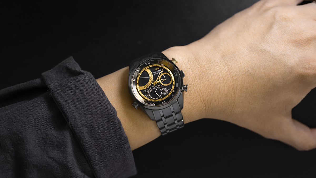 さらにデュラテクトDLCによる漆黒のケースとブレスレットが宇宙の静寂を思わせ、ゴールドのアクセントが星の輝きを添える。その完成度は、眺めるだけでは語り尽くせません。
