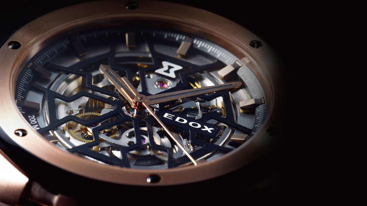 エドックスの「デルフィン」コレクションに、新色のスケルトンモデル2種が加わりました。伝統的な防水性能に加え、モダン建築を連想させるスケルトンダイアルや、1973年製ヘリテージを継承する12角形ベゼルをまとい、デザイン面でも魅力を放つ仕上がりです。