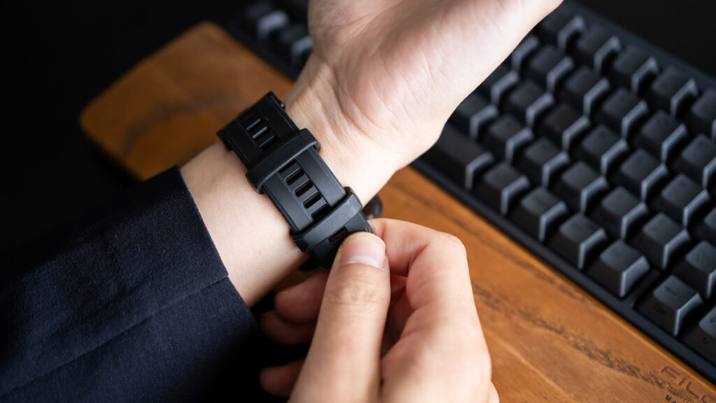 純正のシリコンバンドも優秀ですが、バックル(留め具)の金具が手首に当たったり、寝返りの際に引っかかったりすることがゼロではありません。