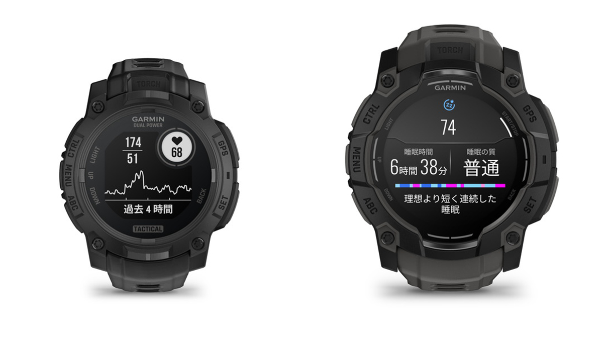 さらに、濡れた手やグローブ着用時でも確実に操作できる物理ボタン、MIL規格の堅牢性、そして充電が数週間不可能な状況でも動き続ける「Instinct」の長時間バッテリーは、任務における絶対的な信頼性を確保してくれるでしょう。
