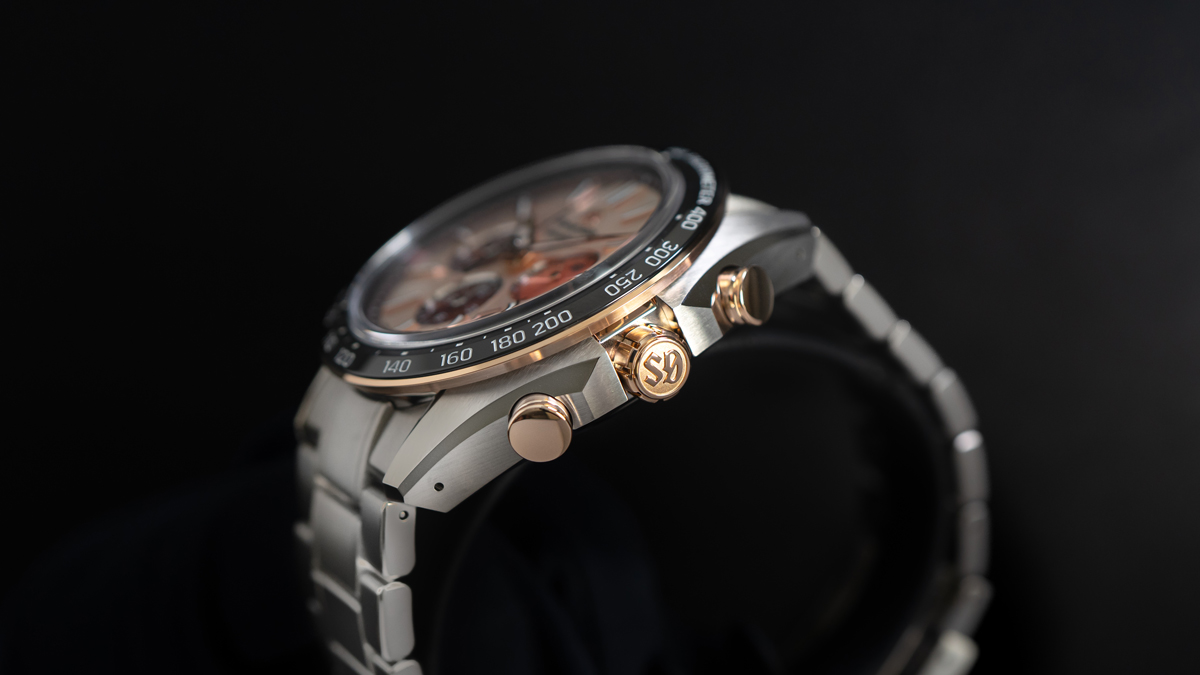 SLGC006は、カッパーピンクのダイアルにローズゴールドの要素を組み合わせた暖色系のデザインが非常に個性的で、日本の自然美と最先端の時計技術を結集した特別なクロノグラフを求める方に最適なモデルです。