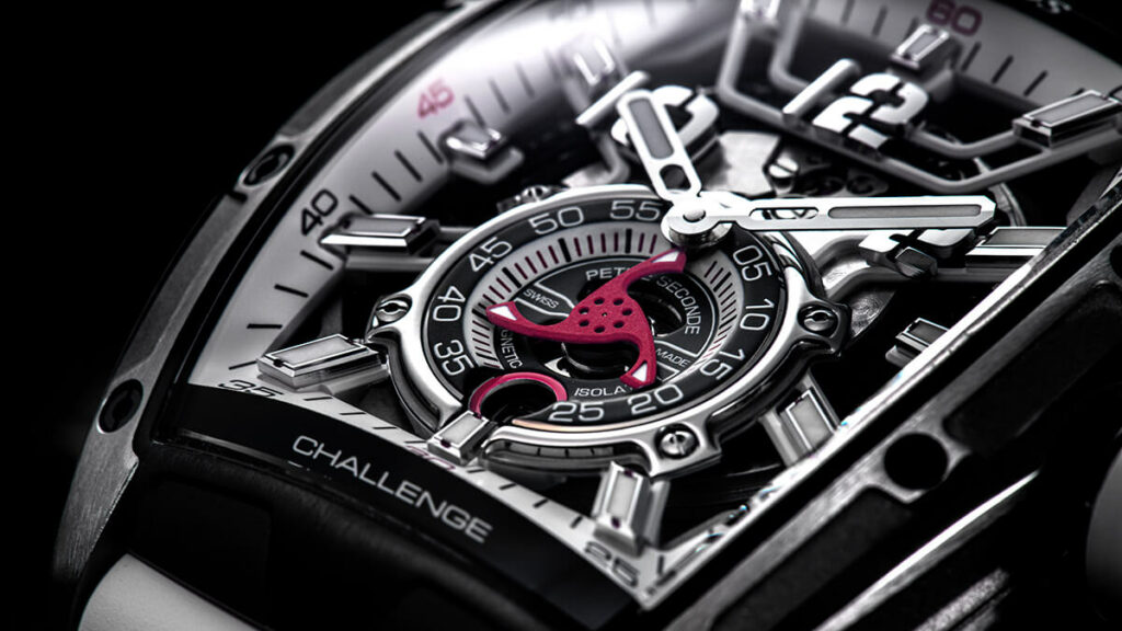 クストスを代表する「ジェットライナー プティセコンド」は、航空機をイメージして設計されたコレクションで、本物の機体のような構造美と軽量化を実現しています。