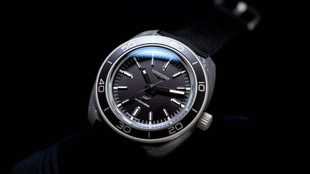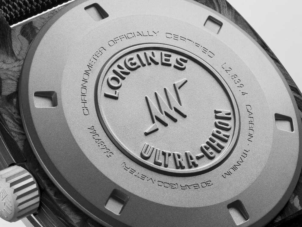 『L2.839.4.52.2』は、ロンジンのハイビート技術を象徴する往年の名機「ウルトラクロン」をベースに、モダンなカーボン素材とチタン素材を採用したモデルです。。