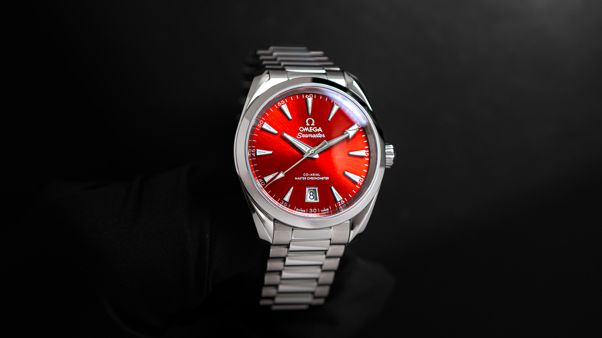 ダイバーズウォッチに由来するアクアテラらしい、涼しげなカラーリングのモデルです。当店スタッフ愛用モデルの現行機であり、ネイビーカラーのスーツなどに合わせるとビシッと決まります。着用レビューもしておりますので、ぜひ併せてご確認くださいませ。