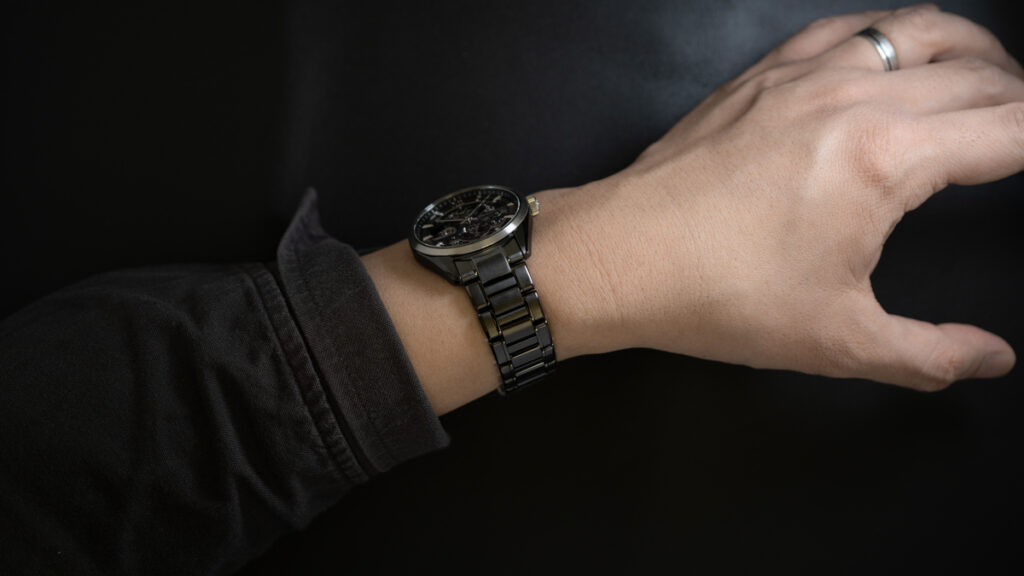 ブラックで統一されたブレスレットと上質なコードバンストラップ