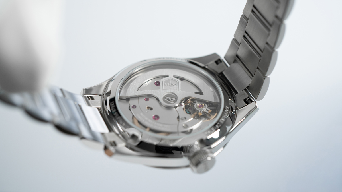 またシンプルなバーインデックスとスケルトン針の組み合わせが、控えめながらも洗練された印象を演出。ステンレススチール製のケースとHリンクブレスレットには鏡面仕上げとヘアライン加工が施され、金属の上品な質感が手元を彩るでしょう。