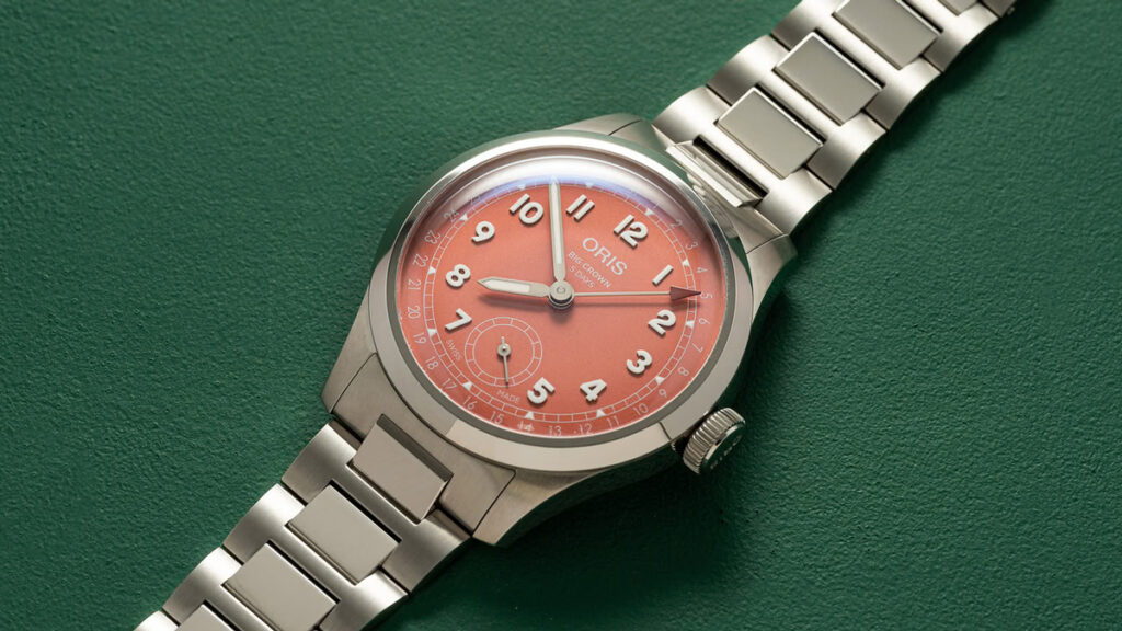 ダイアル外周には日付を指し示すポインターデイト機構を搭載し、クラシックな意匠の中にオリスらしい独自性を演出。加えてポリッシュとヘアライン加工が施されたステンレススチールケースやブレスレットも上品で、どの角度から見ても質感の高さが際立つでしょう。
