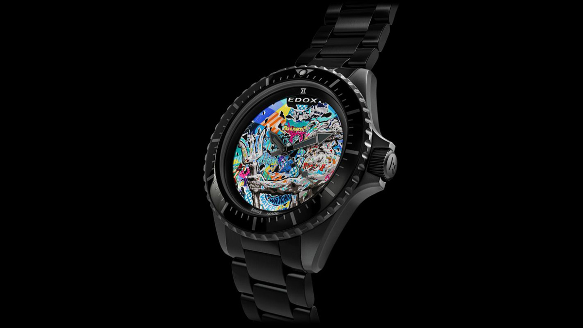 現代アーティストのジョ・ディ・ボナ(Jo Di Bona)とのコラボレーションモデル。1000m防水を誇るネプチュニアンをベースに、海の神が描かれたポップなイラストがダイアルに落とし込まれています。
