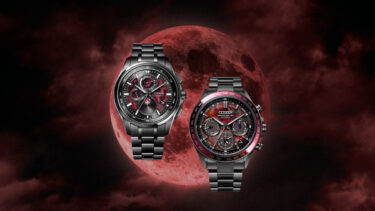 もう一方は、受信した電波から正しい月相を表示する「ルナプログラム」搭載モデルです。こちらは、何層にも赤いインクを塗り重ねることで、立体感のあるディテールを実現しています。いずれも、月に由来する独創性豊かな表情を持つ、神秘的な皆既月食にふさわしいモデルと言えるでしょう。
