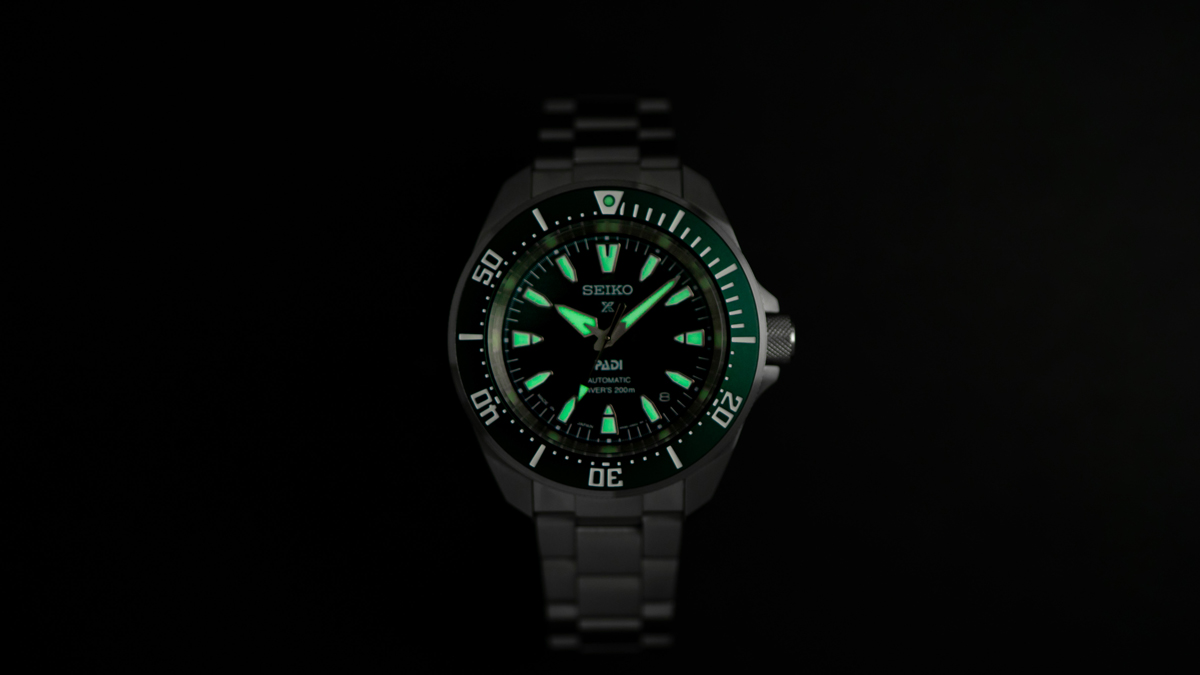 内部にはGMT機能付きの新型キャリバー6R54を搭載し、2つのタイムゾーン表示と約72時間のロングパワーリザーブを両立。200m潜水用防水や耐磁性も備えており、本格ダイビングにも対応できる堅牢な設計です。