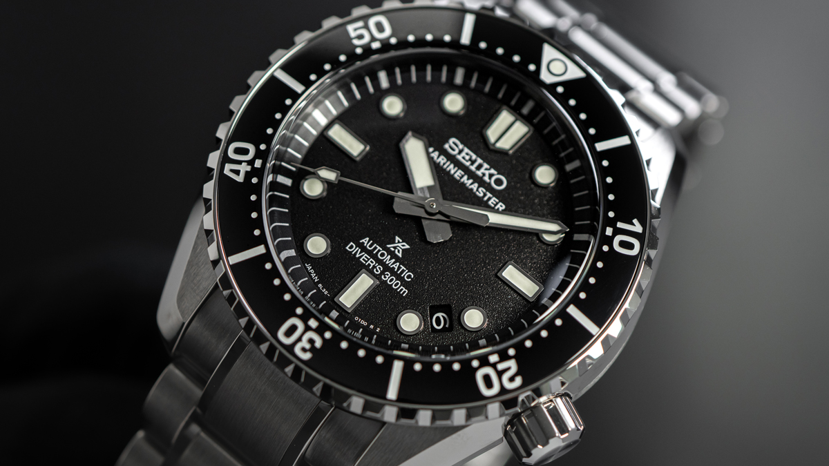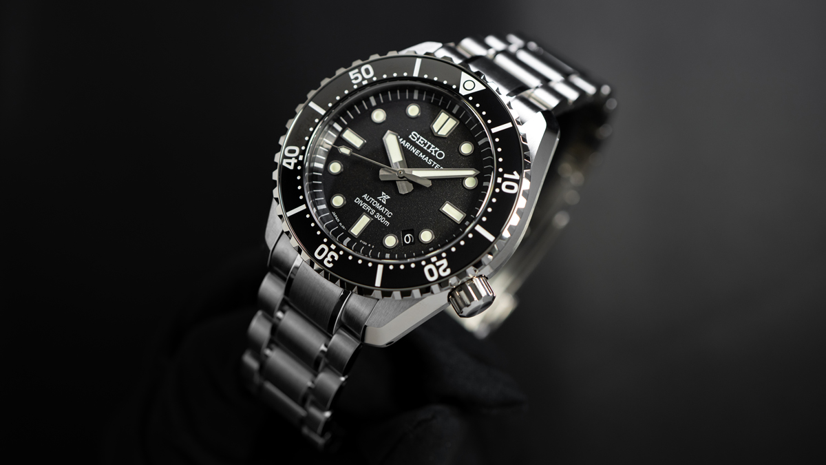 ざらついた質感のマットブラックダイアルは、落ち着きと高級感を併せ持ち、針やインデックスの質感によるコントラストで視認性が向上。ブラックベゼルの深い溝は操作性を高め、1968年ダイバーズを思わせるケース形状がノスタルジックな味わいを添えています。