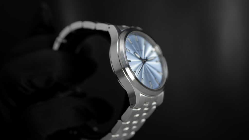 最大の特徴は、シリーズ初採用となるギヨシェ装飾です。視認性のみを重視した従来のマットな質感とは一線を画しており、放射状の波模様を描くパターンが加わることで、エレガンスと奥行きを有した表情に仕上げられています。